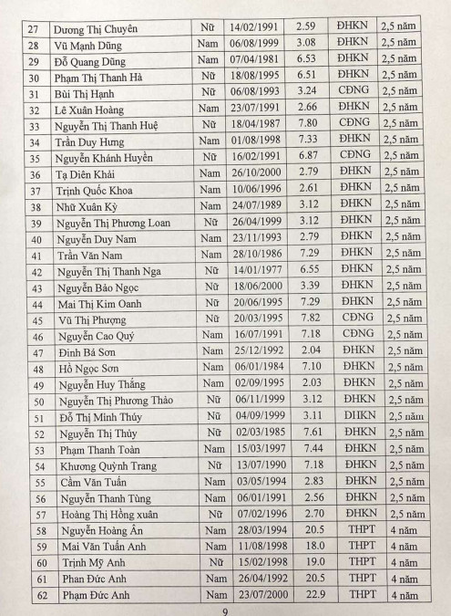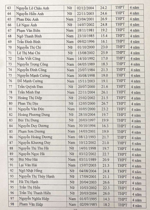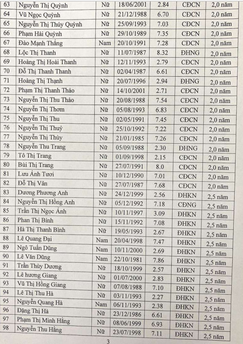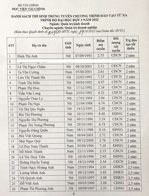 2. Danh sách thí sinh trúng tuyển Chương trình đào tạo từ xa, trình độ Đại học đợt 3 (Chuyên ngành Quản trị doanh nghiệp)