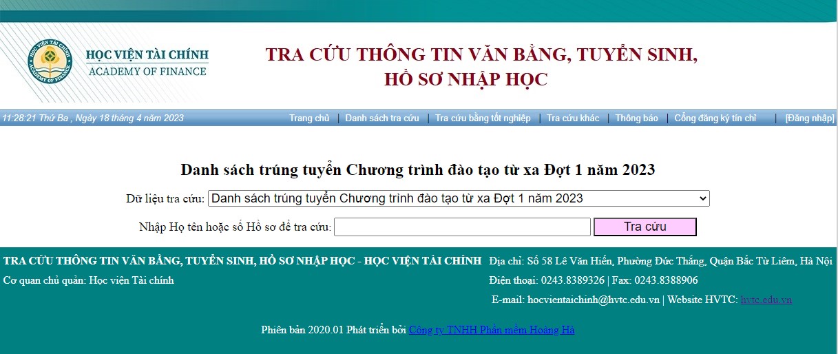 Thông báoTra cứu Danh sách trúng tuyển Chương trình đào tạo từ xa Đợt 1 năm 2023 Posted on 18/04/202318/04/2023 by Ban Điều Hành Chương Trình Đào Tạo Từ Xa 18 Th4 Link tra cứu kết quả Lễ khai giảng chương trình đào tạo từ xa trình độ đại học đợt 1 năm 2023 Thông báo tuyển sinh chương trình đào tạo từ xa trình độ đại học đợt 2 năm 2023